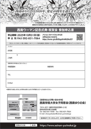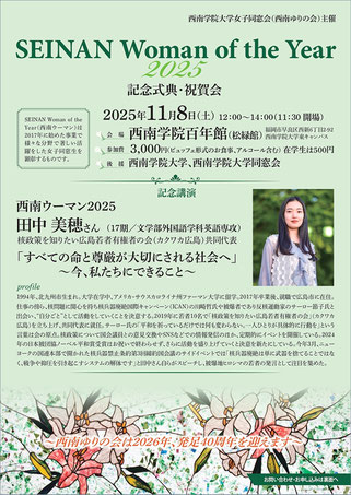 2025年度 西南学院大学女子同窓生支援事業→詳しくはこちら